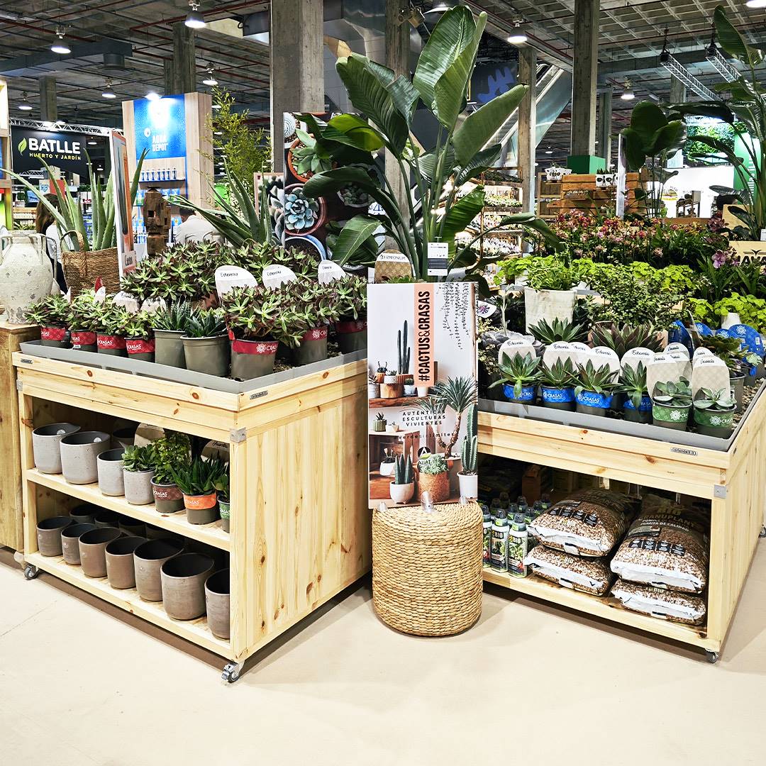 Die Modularität und die verschiedenen Höhen ermöglichen die Schaffung einzelner Präsentationsinseln oder eindrucksvoller Ausstellungsszenarien, ideal für Gartencenter, Landwirtschaftsfachmärkte und den Großhandel